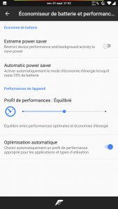 - Le menu d’extinction avec différents mode de redémarrage (full/recovery/logiciel) et les raccourcis « Lampe torche » et « Capture d’écran ».