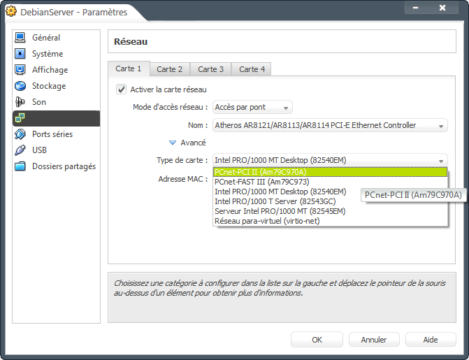 Pourtant, si l’on teste une à une les cartes « émulables », il s’avère que seules les cartes AMD PCnet (chipsets Am79C970A et Am79C973) permettent l’amorçage PXE. Bug ou incompatibilité ?..